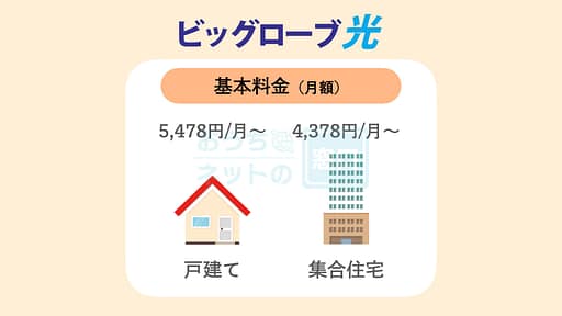 ビッグローブ光の料金は大手光回線サービスの中では、戸建てが他社と比較するとやや安くで、集合住宅は平均的な料金設定となっています。