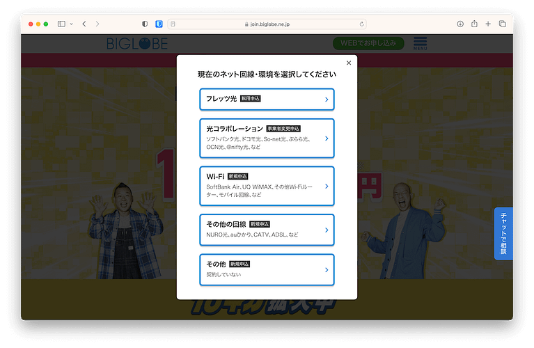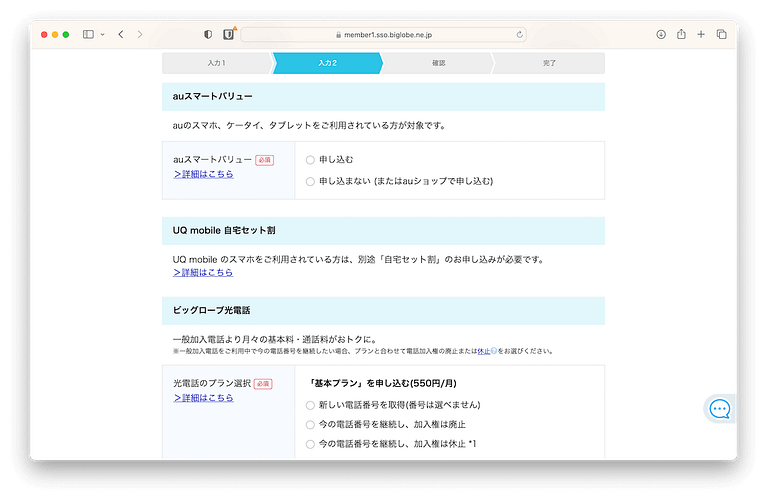 ビッグローブ光の申し込みをする