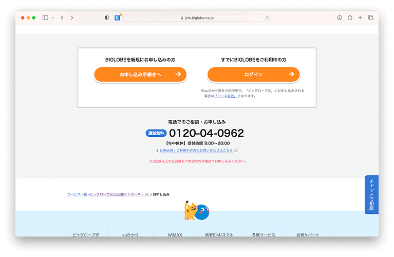ビッグローブ光 公式窓口