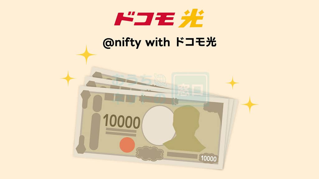 | @nifty with ドコモ光 詳しく見る 公式サイト | 新規/光回線再利用 転用/事業者変更20,000円 | 新規/光回線再利用 転用/事業者変更 35,000円 | 不要 | @nifty | 8ヶ月後 |