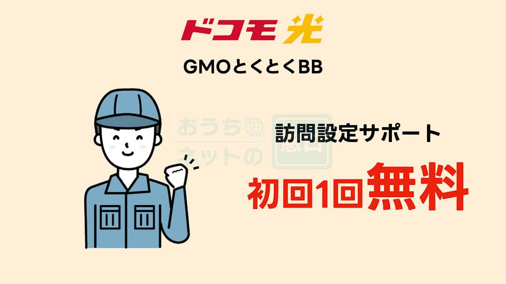 GMOとくとくBBでは、ドコモ光専用の訪問サポートを初回無料で提供。ネット接続やWi-Fi設定など、設定に不安がある方も安心して申し込めます。