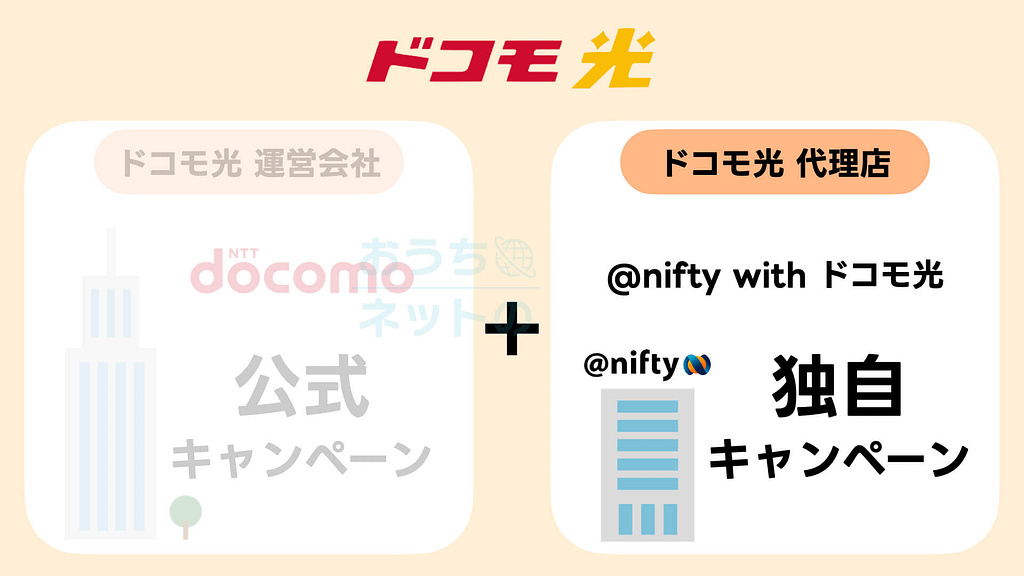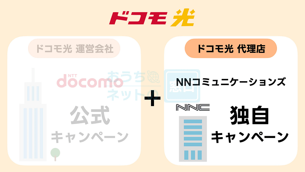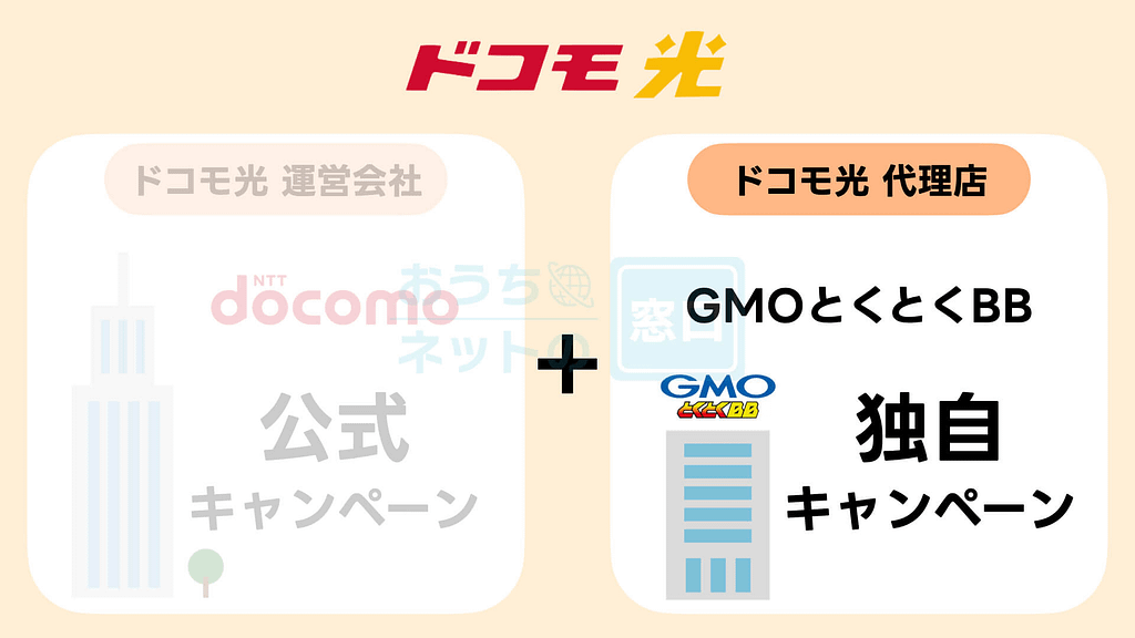 ドコモ光では、どの窓口から申し込んだとしても「ドコモ本体が提供する共通キャンペーン」が自動的に適用されます。これは各社のキャッシュバックとは別枠で付与されるものです。