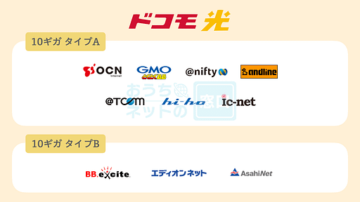 例えば、@nifty光からドコモ光に乗り換える際に、プロバイダをタイプAの「@nifty」にすることで、@niftyプロバイダのサービスをそのまま引き継ぐことができます。