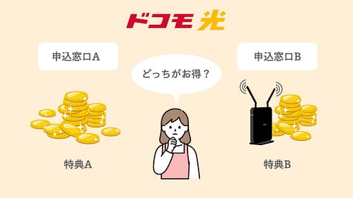 どの窓口を選んでも月額料金や品質は一緒であり、ドコモ光の共通特典は必ず受けられるので、一番お得な窓口を選びましょう!